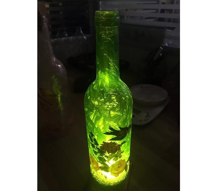 蒙砂酒瓶是在制品玻璃上,粘附一定大小面積的玻璃色釉粉,玻璃瓶廠(chǎng)經(jīng)過(guò)580~600℃的高溫烘烤,使玻璃色釉涂層凝結(jié)在玻璃外表,并顯現(xiàn)出具有與玻璃主體不同顏色的一種裝飾辦法。粘附玻璃色釉粉,可用排筆涂刷,亦可用膠輥滾涂。經(jīng)過(guò)絲印加工,能夠得到蒙砂面的樓空?qǐng)D案。 其辦法是:在玻璃制品外表上,絲印一層由阻熔劑構(gòu)成的圖案紋樣。